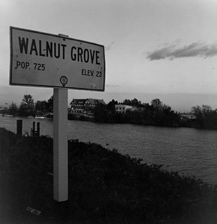 Walnut Grove sign at dusk, from Walnut Grove: Portrait of A Town, 1961