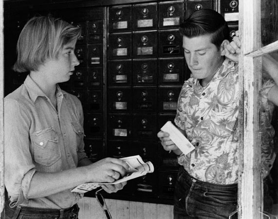 Daughter of rancher Charles Ryan and friend at Post Office, Monticello, Berryessa Valley, 1956